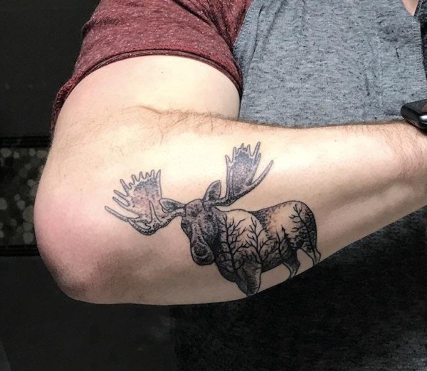 麋鹿纹身图案男 男生手臂上黑色的麋鹿纹身图片