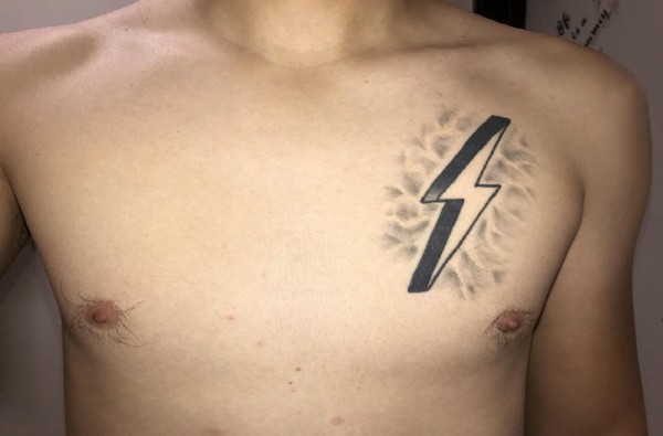 霸气的闪电纹身 男生胸部黑色的闪电纹身图片