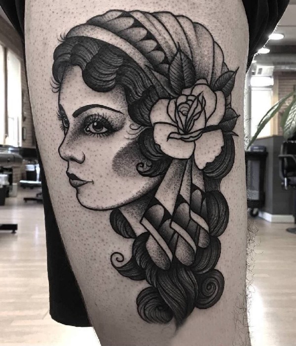 传统花腿纹身--18张传统风格的大花腿纹身图案作品