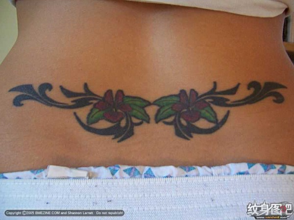 女生玲珑腰部的依兰花图案纹身女生腰部嫣红底_腰部纹身图案大全_纹身图吧