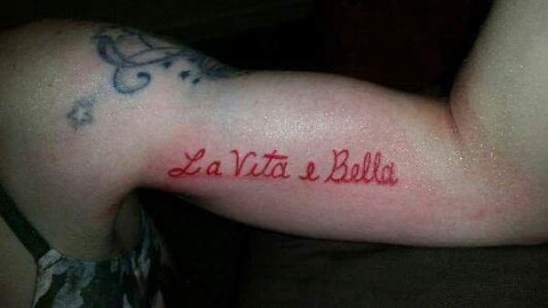 花体英文纹身 男生手臂上花体英文纹身红色图片