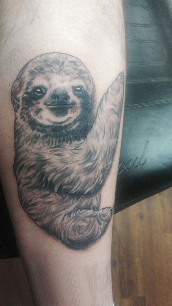 百乐动物纹身 男生小腿上黑色的动物纹身图片