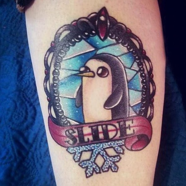 企鹅纹身图 女生小腿上彩色的企鹅纹身图片