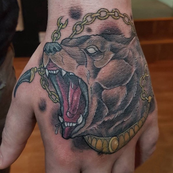 手背纹身 男生手背上动物熊纹身图片