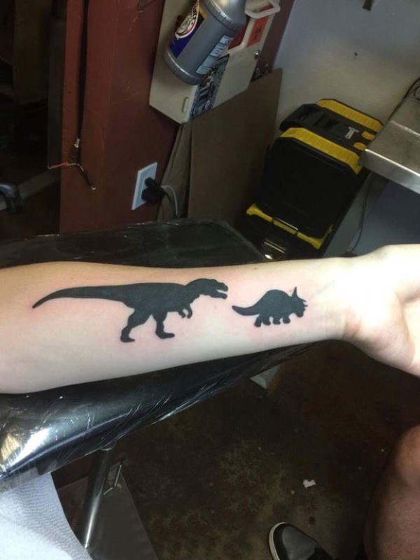 手臂纹身素材 男生手臂上黑色的恐龙纹身图片