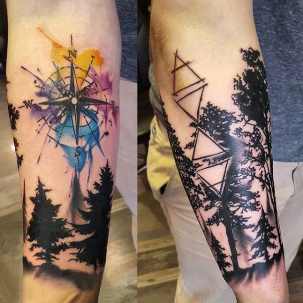 手臂纹身素材 男生手臂上黑色的风景纹身图片