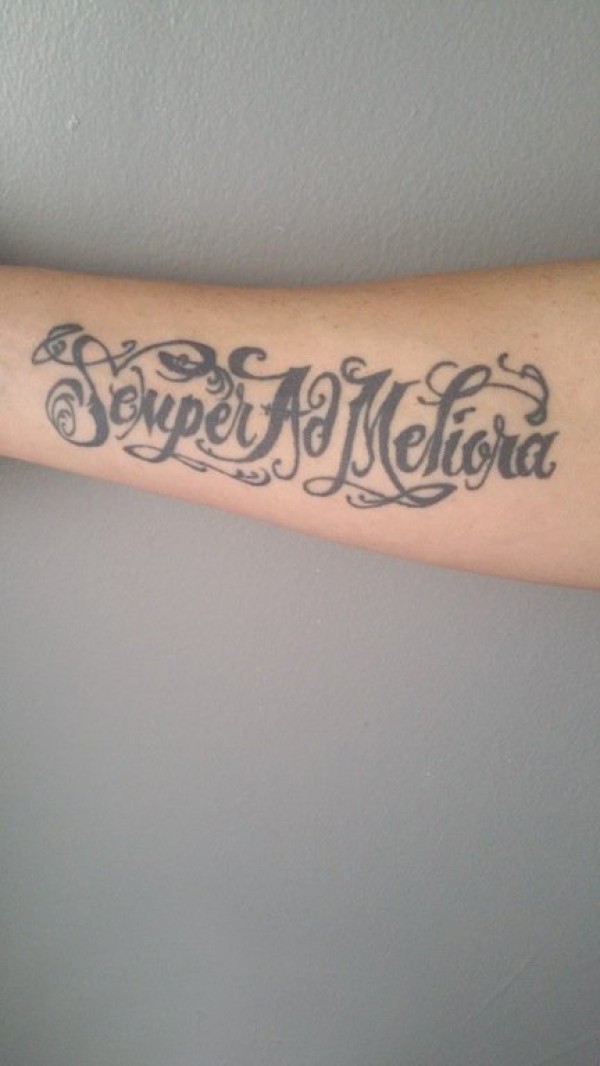 花体英文纹身 女生手臂上花体英文纹身黑色图片
