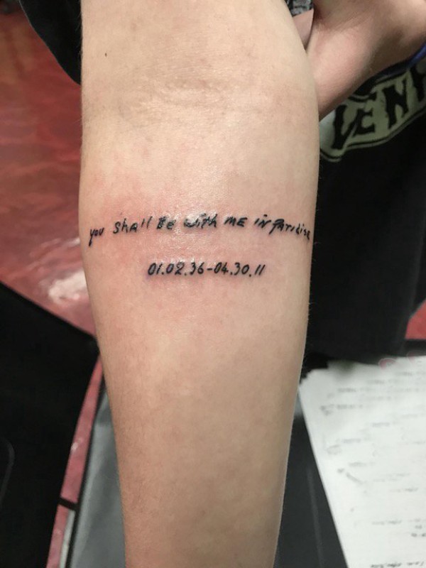 花体英文纹身 女生手臂上花体英文纹身经典图片