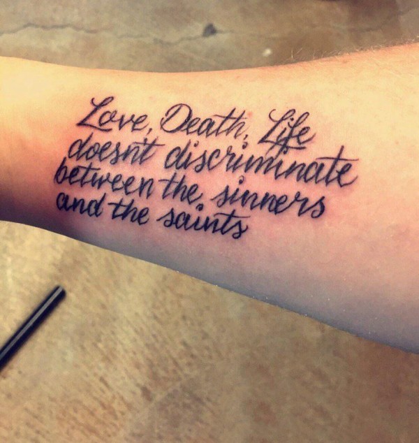 花体英文纹身 男生手臂上简单线条纹身花体英文纹身图片