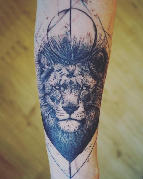 狮子头纹身图片 男生手臂上狮子头纹身图片