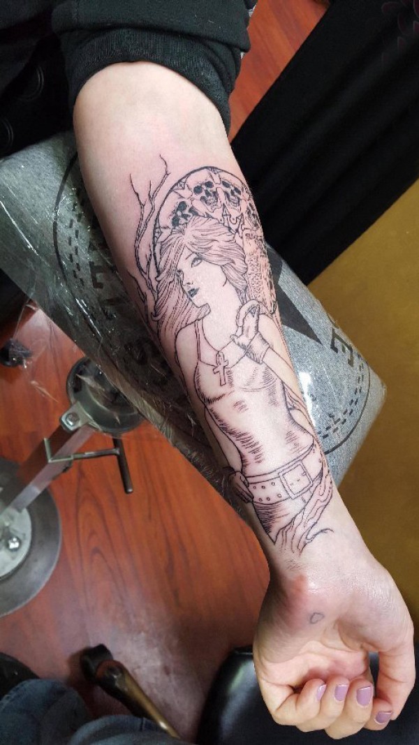 女生人物纹身图案 男生手臂上素描纹身女生人物纹身图案