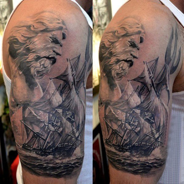 帆船纹身图片 男生手臂上帆船纹身黑色图片