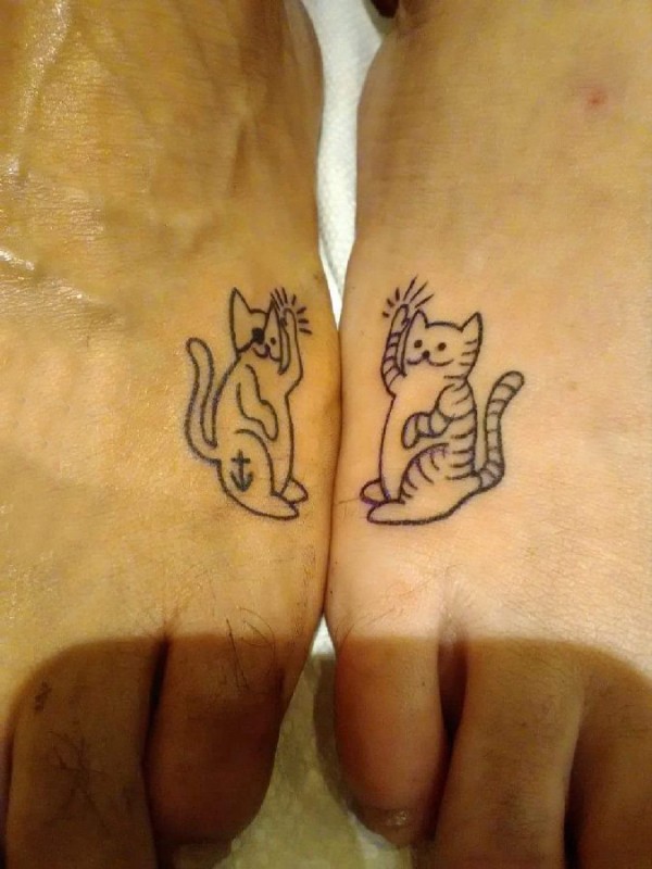 百乐动物纹身 情侣脚背上黑色的猫咪纹身图片