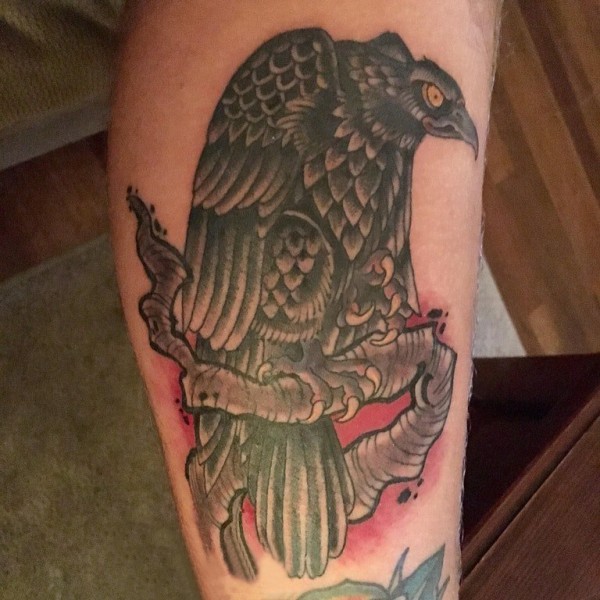 百乐动物纹身 男生小腿上彩色的秃鹰纹身图片