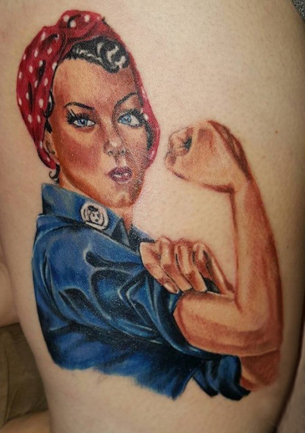 人物肖像纹身 女生大腿上彩色的人物肖像纹身图片