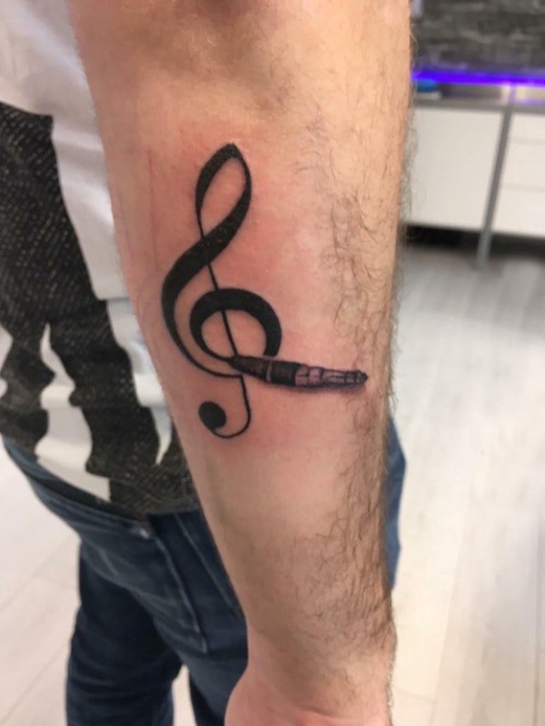 手臂纹身素材 男生手臂上黑色的音符纹身图片