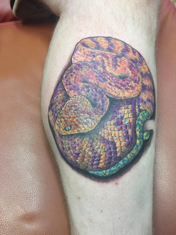 欧美小腿纹身 男生小腿上彩色的蛇纹身图片