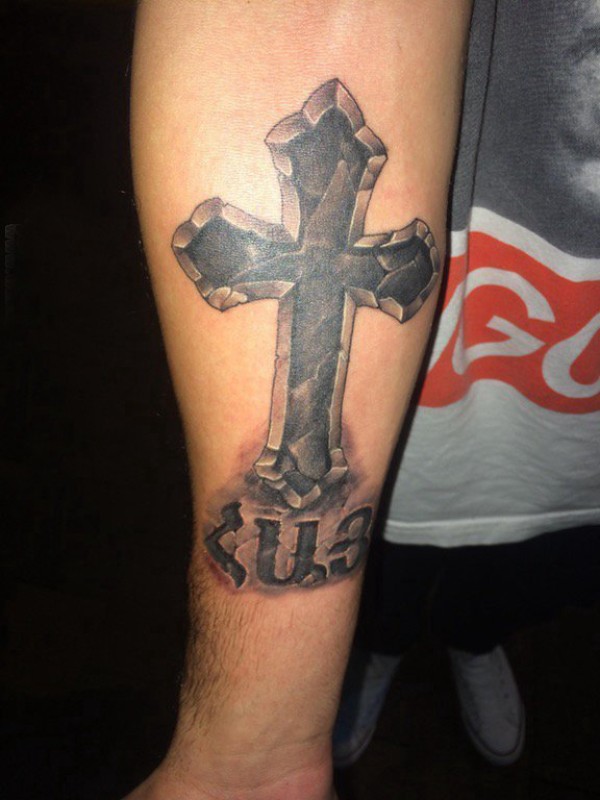 简单十字架纹身 男生手臂上简单十字架纹身图片