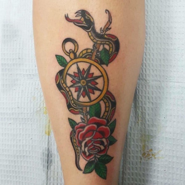 蛇和花朵纹身图案 女生小腿上蛇和花朵纹身图案