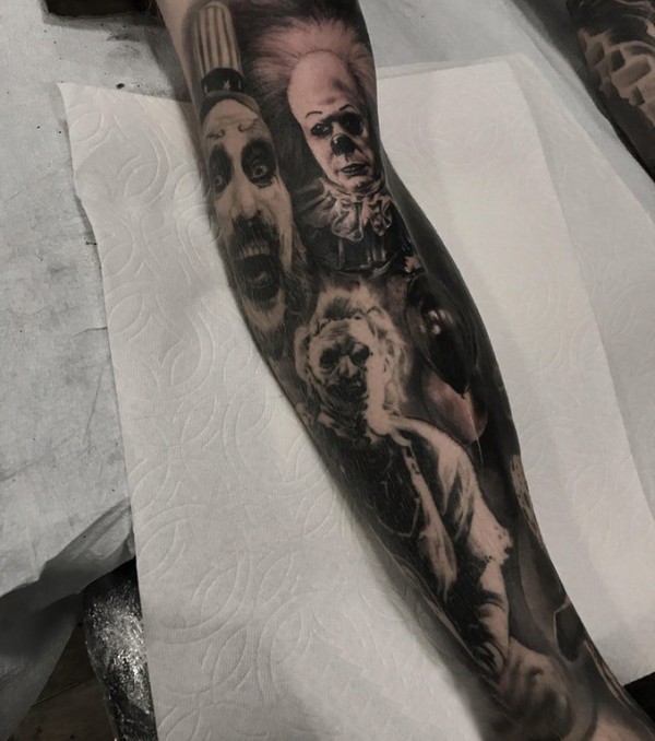 人物花臂纹身图案 男生手臂上黑色的人物花臂纹身图片