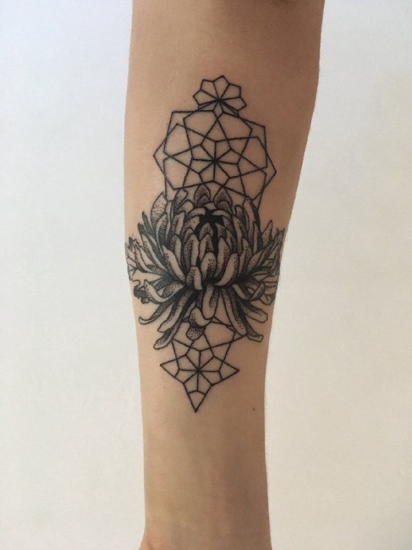 黑灰菊花纹身 男生手臂上黑灰菊花纹身图片