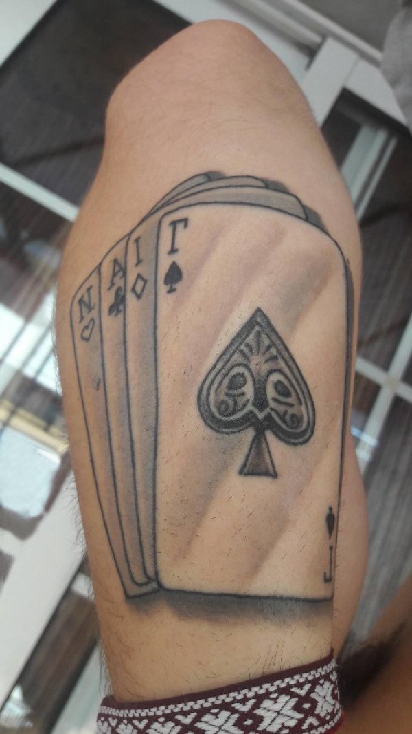 欧美扑克牌纹身 男生小腿上黑色的扑克牌纹身图片