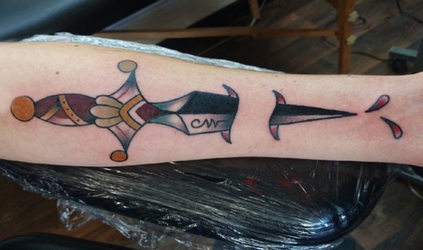 欧美匕首纹身 男生手臂上欧美匕首纹身彩绘图片