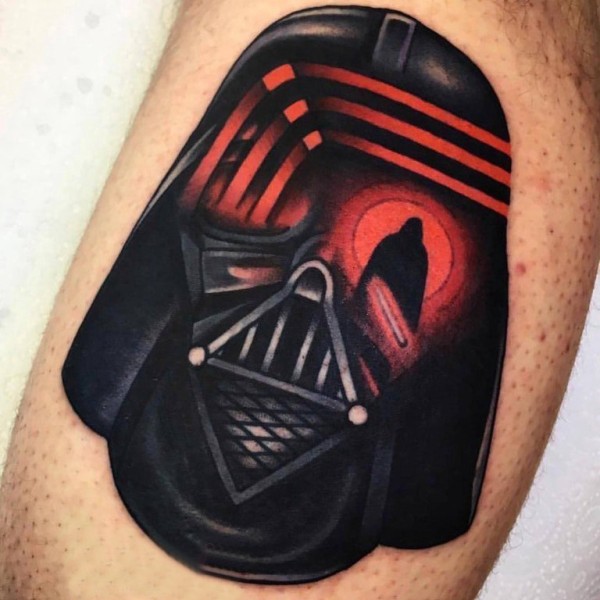 日本武士盔甲纹身 男生小腿上日本武士盔甲纹身图片