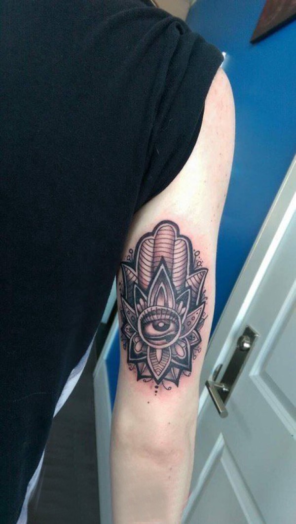 黑灰纹身 男生手臂上黑灰纹身法蒂玛之手纹身图片