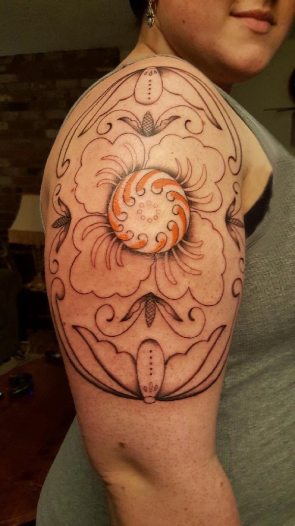 后肩唯美花藤英文图案图片_植物纹身图案大全_纹身图吧