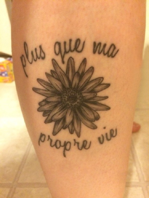 黑灰菊花纹身 男生小腿上黑灰菊花纹身图片