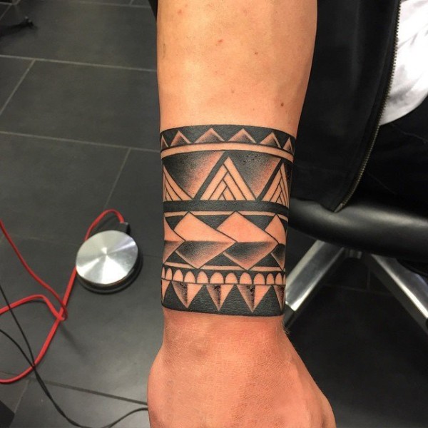 多款手臂上黑色线条素描点刺技巧几何元素创意经典袖章纹身图案