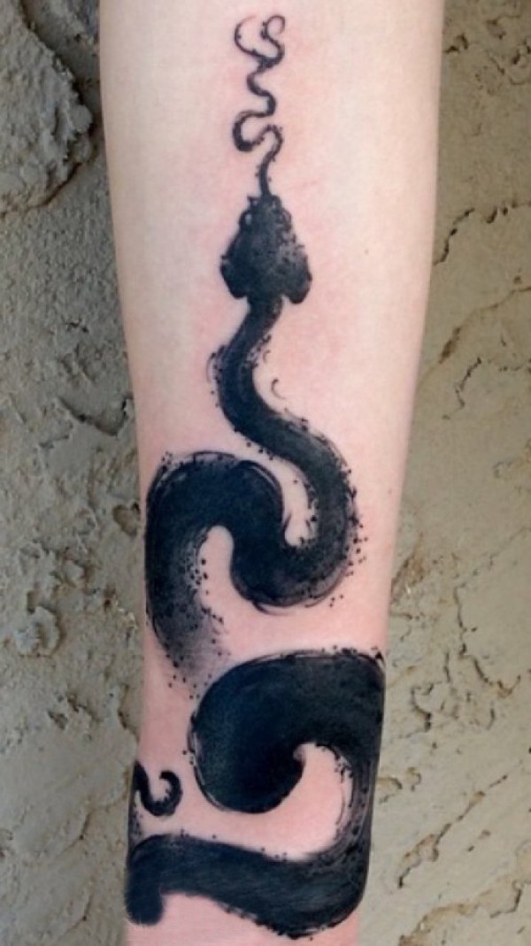 手臂纹身素材 男生手臂上水墨蛇纹身图片