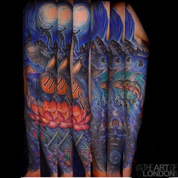 逼真的超现实主义花纹身图案来自纹身师莫拉莱斯