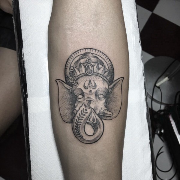 手臂黑灰象神_一组12张手臂上的黑灰象神纹身图案作品欣赏