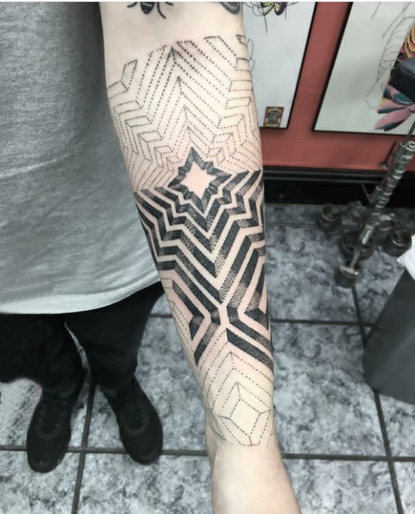 手臂纹身素材 男生手臂上黑色的几何纹身图片