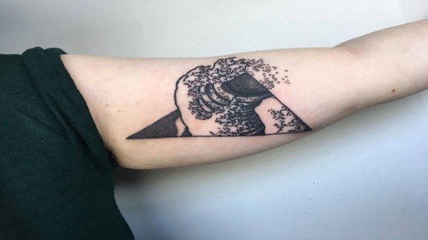 双大臂纹身 男生大臂上三角形和海浪纹身图片
