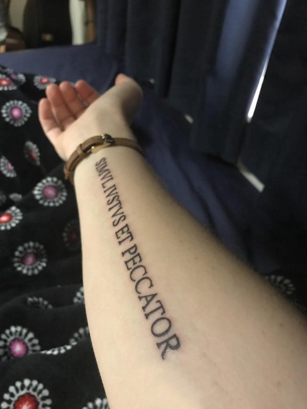 手臂纹身图片 女生手臂上黑色的英文短句纹身图片