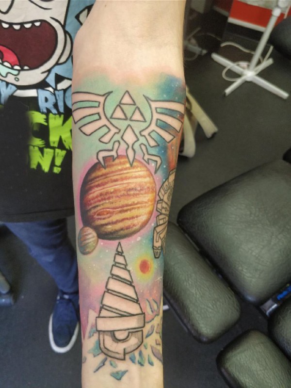 手臂纹身图片 女生手臂上彩色的星球纹身图片