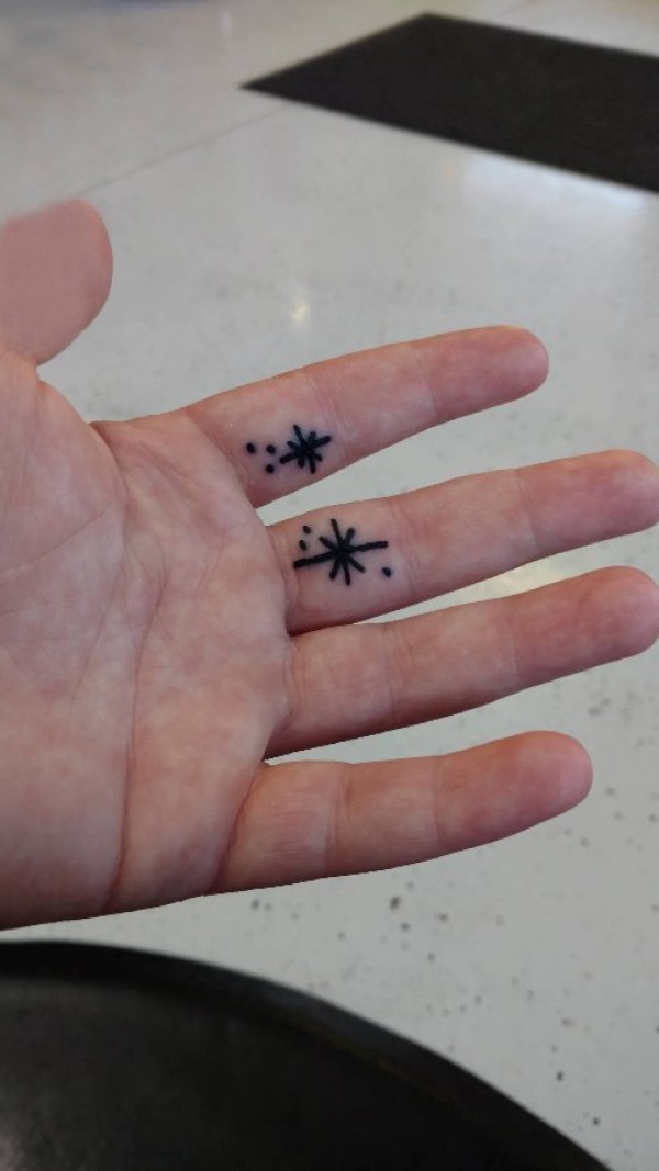 手掌小纹身 男生手掌上黑色的线条纹身图片