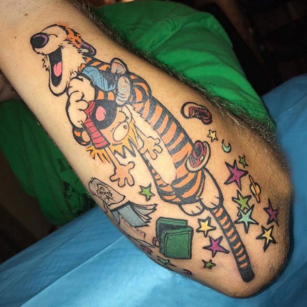 手臂纹身图片 男生手臂上彩色的卡通纹身图片