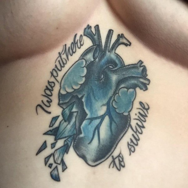 女生胸部纹身 女生胸部破碎的心脏纹身图片