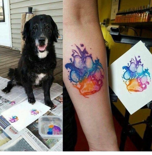 手臂纹身图片 女生手臂上彩色的爪印纹身图片