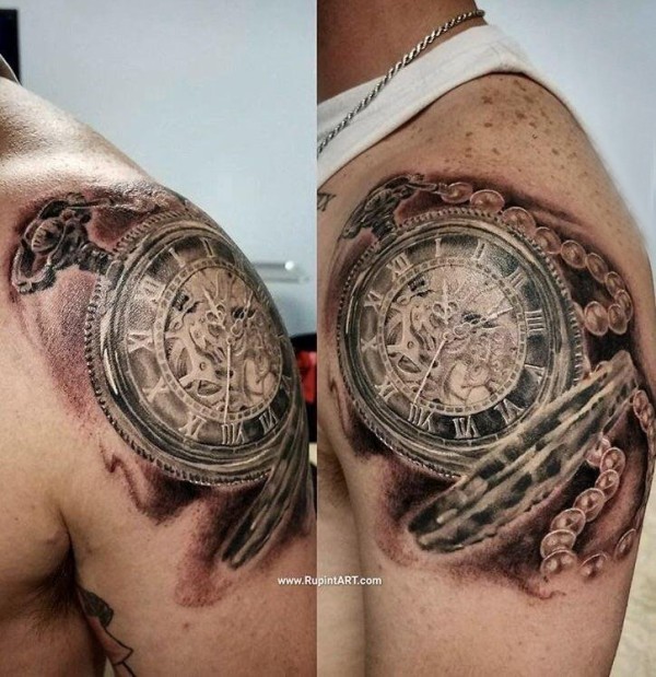 欧美怀表纹身 男生手臂上欧美怀表纹身黑色图片