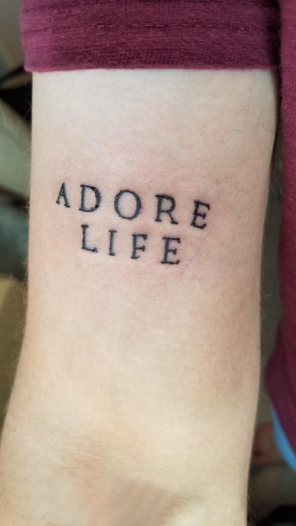 花体英文纹身 女生手臂上花体英文纹身素描图片