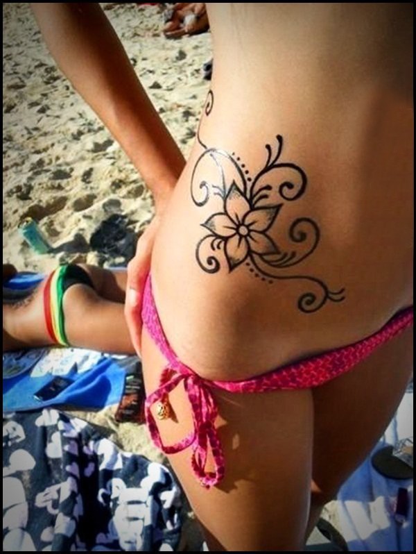 侧腰纹身图 女生侧腰上黑色的花朵纹身图片
