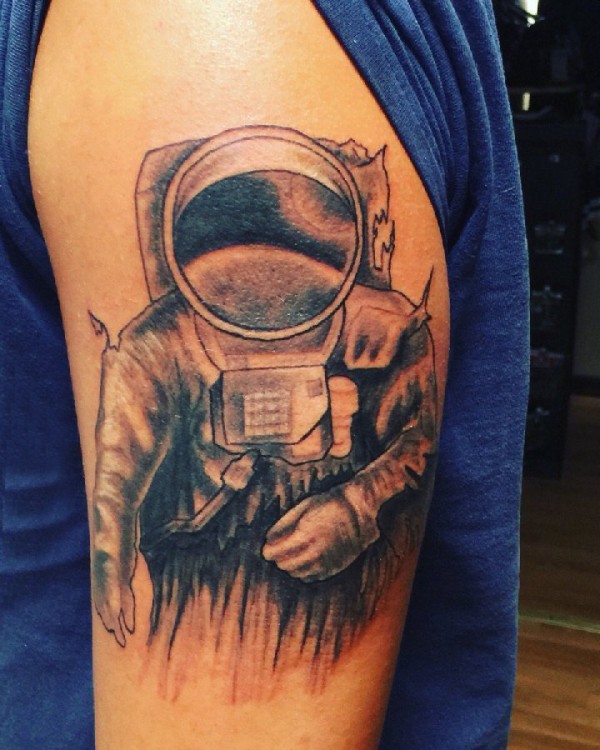 大臂纹身图 男生大臂上黑色的宇航员纹身图片