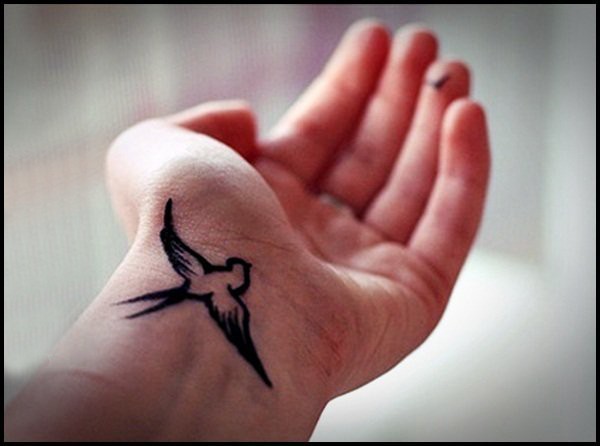 百乐动物纹身 女生手腕上黑色的鸟纹身图片