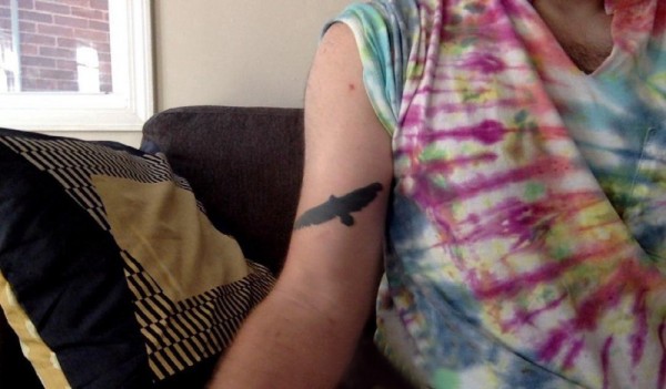 百乐动物纹身 男生手臂上黑色的老鹰纹身图片