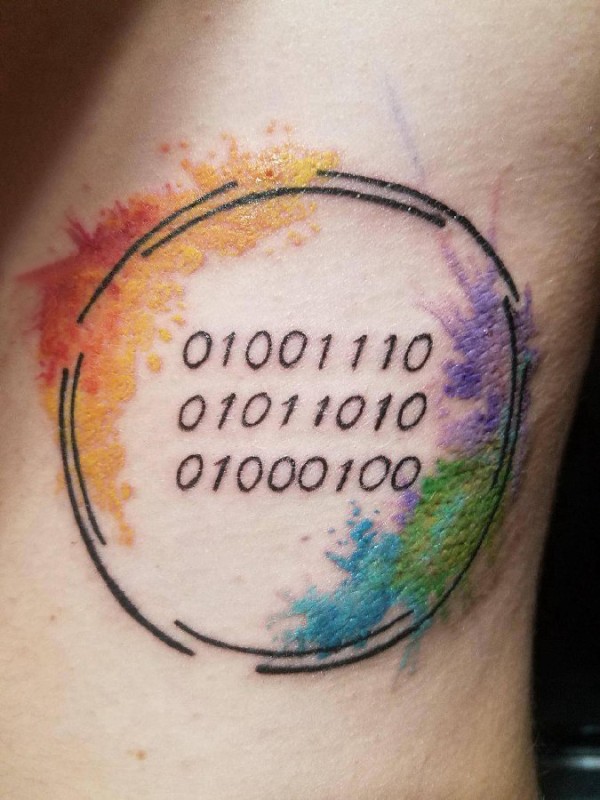 彩绘纹身 男生大腿上彩色的数字纹身图片